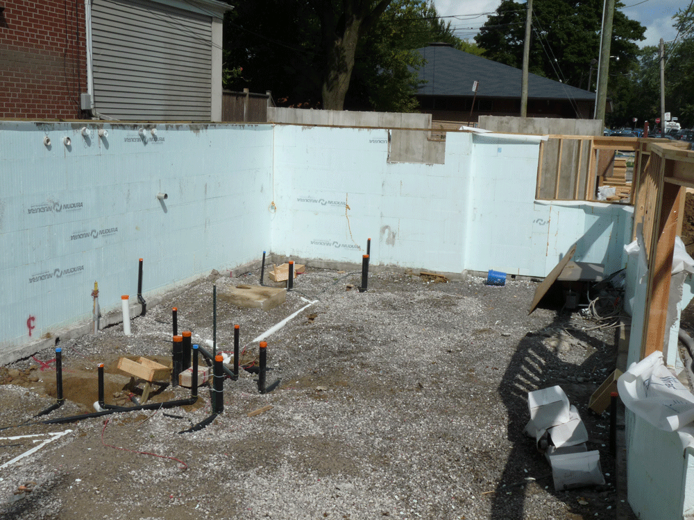 Kew Beachouse is very close to Lake Ontario and also at the bottom of the Toronto sewer system which has proven to be problematic in the past, to say the least! Since the chances of the City fixing the problem are small, The Ideal Environment has developed a unique system of plumbing buildings in the area, which we have used on several projects before. It is the only way to take away the uncertainty of possible sewer backup.
